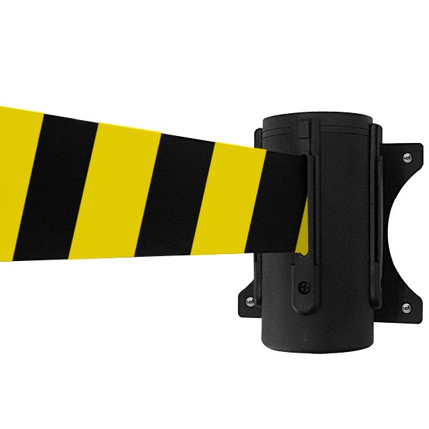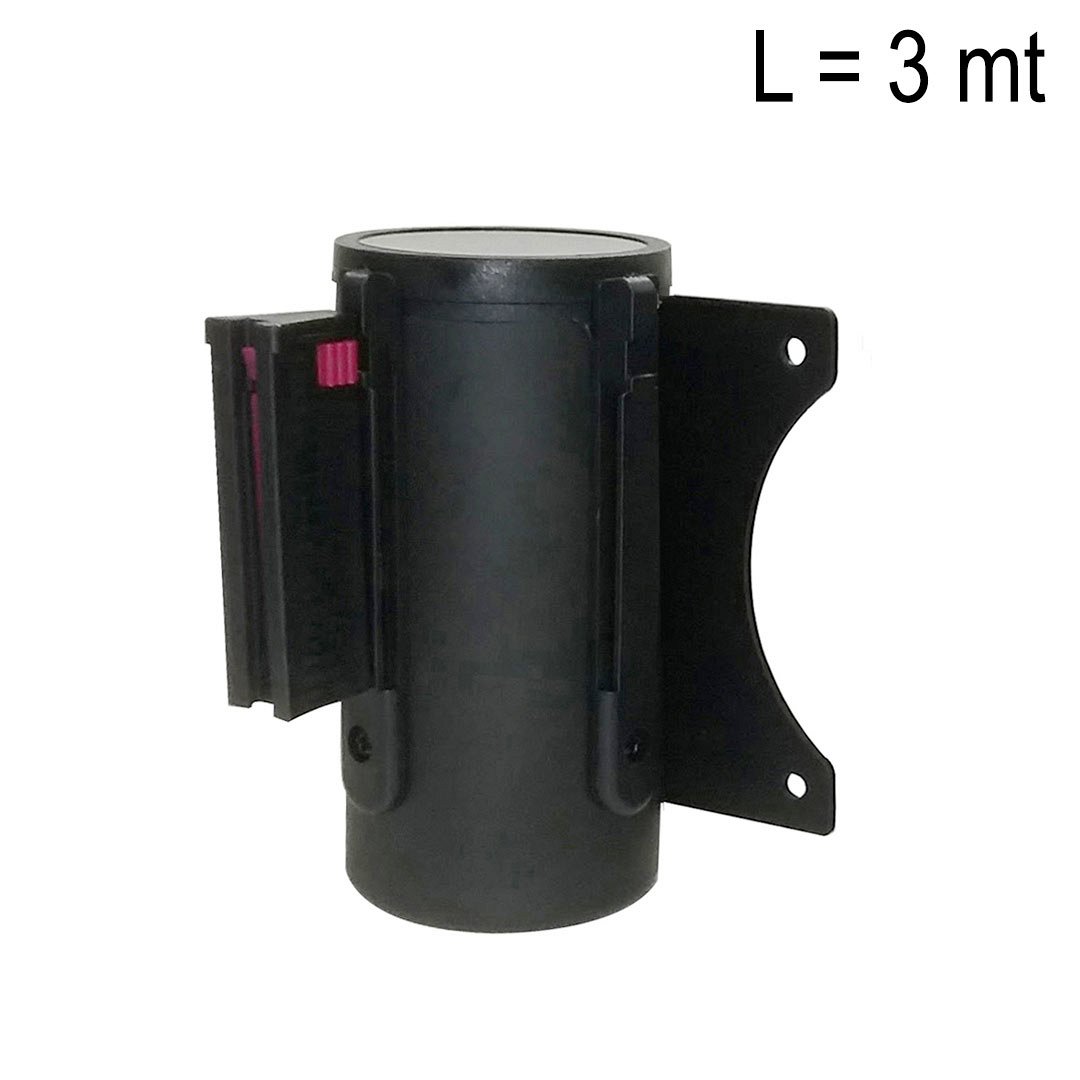 Ideale per il posizionamento anche in punti difficili, l'attacco a parete con nastro estensibile a riavvolgimento automatico in polipropilene è una soluzione salvaspazio che garantisce la stessa funzionalità di controllo degli accessi senza bisogno del paletto di delimitazione.