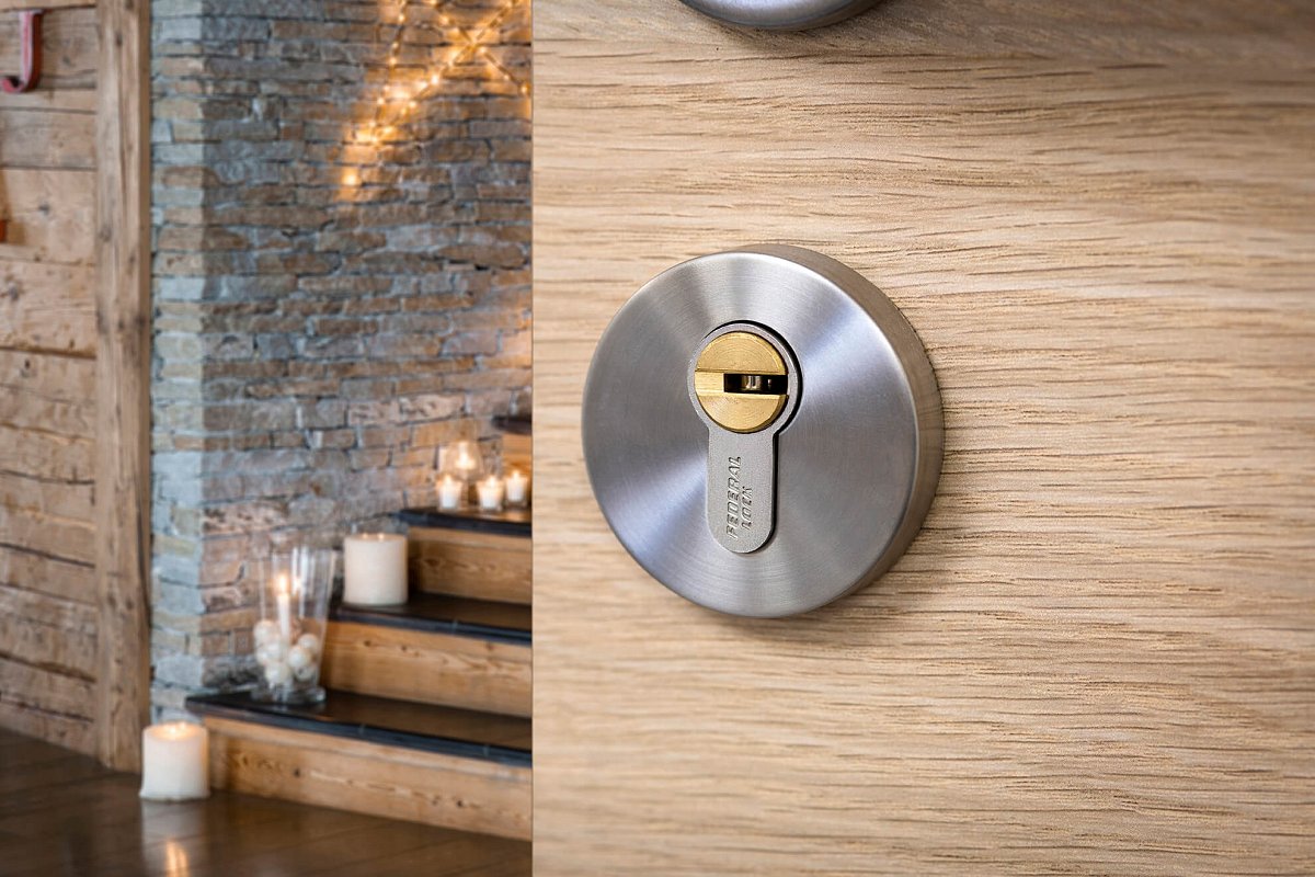 Cilindro a profilo europeo ad alta sicurezza 4 Meccanismi a doppio pin 1 Meccanismo a pin magnetico Protezione antisfilamento Protezione antiperforazione Protezione antiscasso Protezione anti-snap Protezione anti-bumping 5 chiavi piatte reversibili in alpacca Scheda proprietà Modello brevettato e protetto