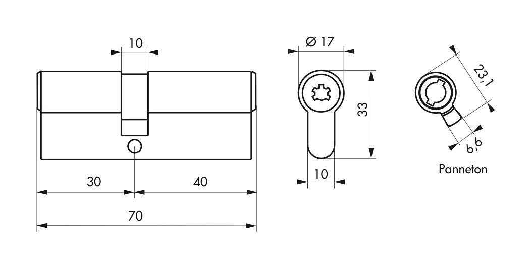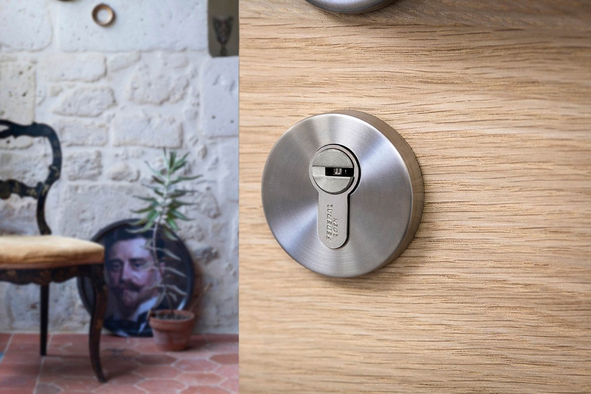 Cilindro a profilo europeo ad alta sicurezza 4 Meccanismi a doppio pin 1 Meccanismo a pin magnetico Protezione antisfilamento Protezione antiperforazione Protezione antiscasso Protezione anti-snap Protezione anti-bumping 4 chiavi piatte reversibili in alpacca Scheda proprietà Modello brevettato e protetto