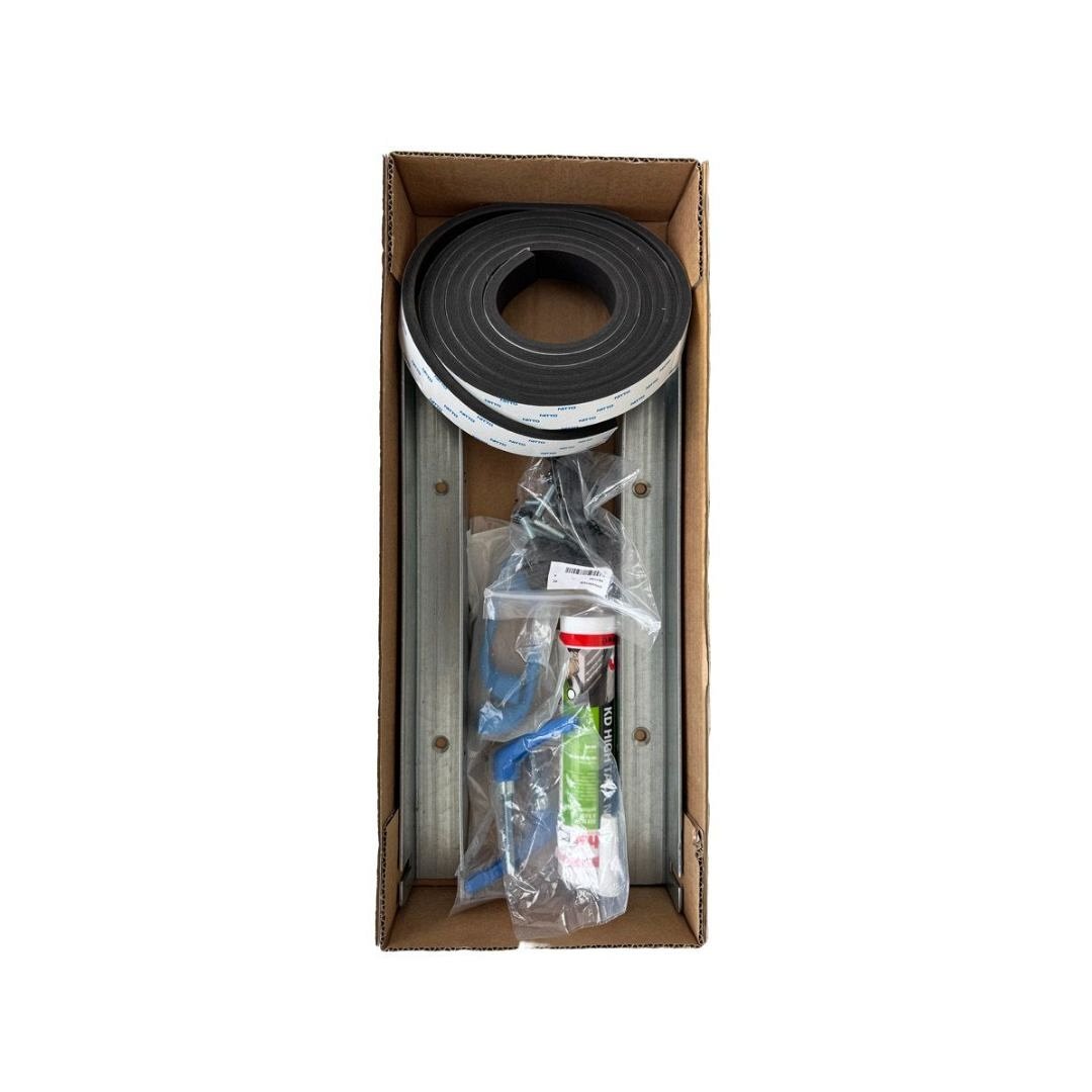 Il kit contiene tutti i componenti necessari per alloggiare e comprimere il pannello: guide laterali in acciaio zincato, guarnizione EPDM ad alta densità, maniglie e manopole di serraggio, silicone sigillante, viti, tasselli e manuale di installazione. Il pannello non è incluso, in modo da lasciare all’utente la massima libertà nella scelta del materiale più adatto alle proprie esigenze (multistrato marino, alluminio, PVC espanso, pannello composito, ecc.).