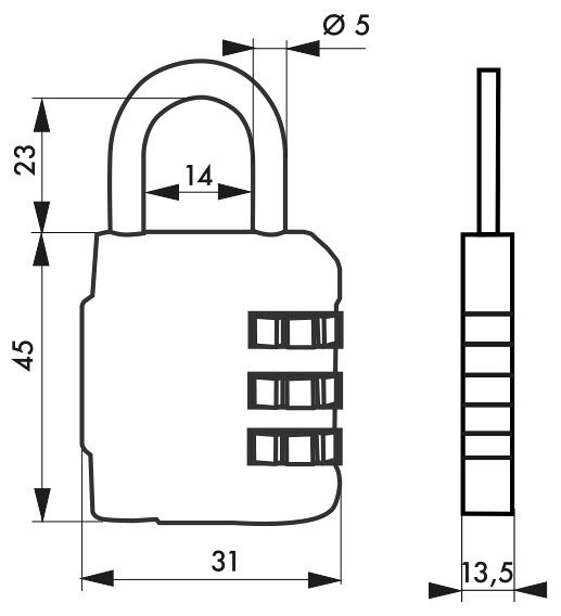 Lucchetto Codice Compact 03, bagaglio, 3 cifre, arco in acciaio, 31mm, nero - THIRARD