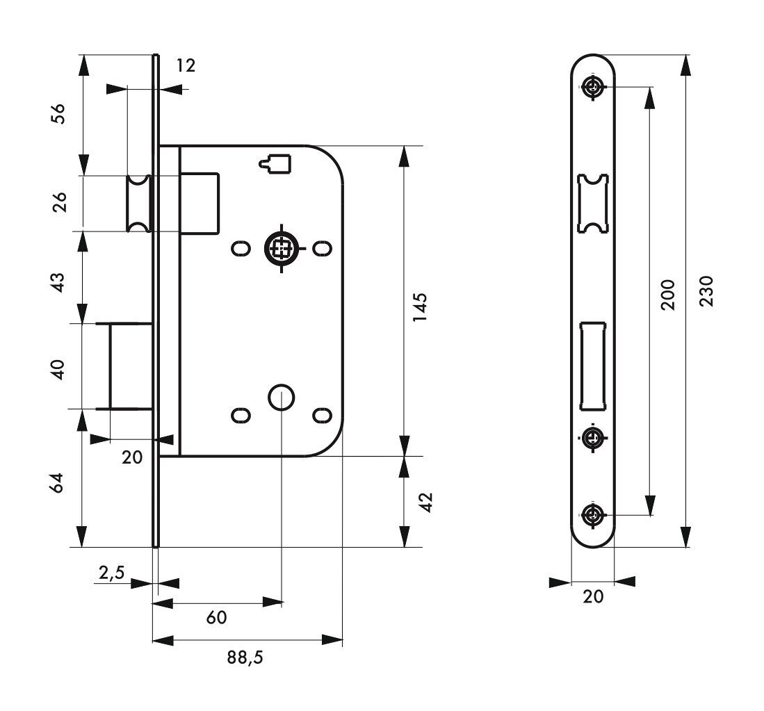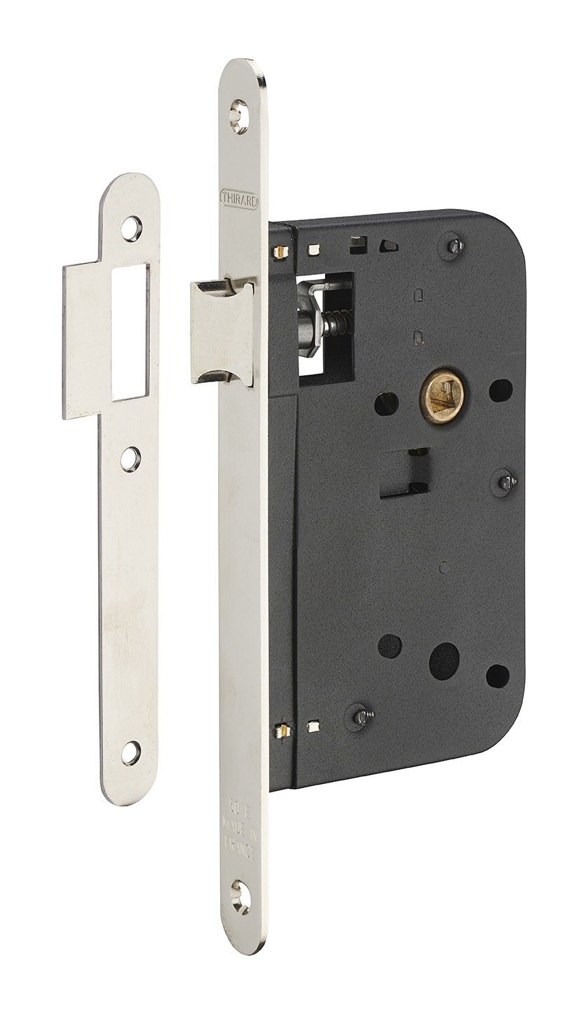 Serratura da incasso per porte interne, asse 60mm, estremità arrotondate, nichelato - THIRARD